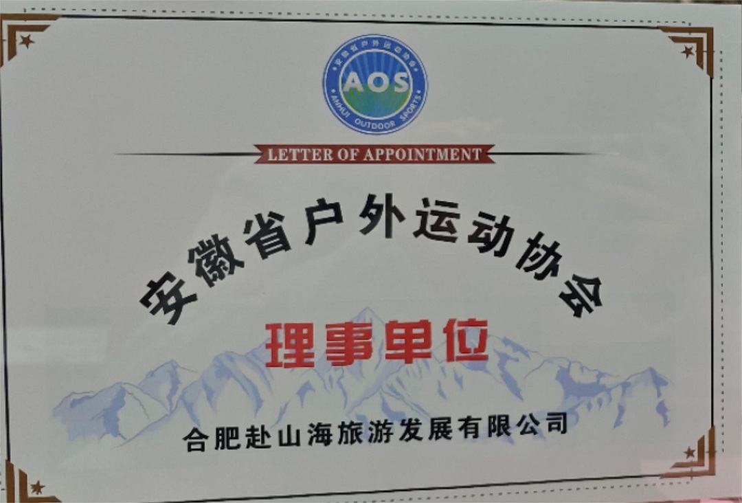 合肥赴山海户外当选“安徽省户外运动协会理事单位”